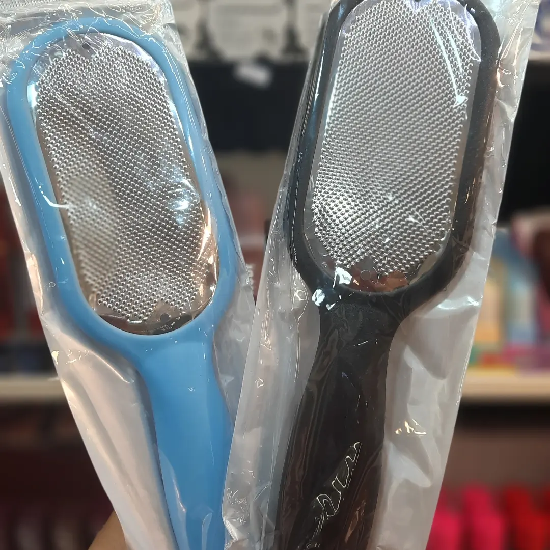 سوهان یا رنده پا بجای استفاده از سنگ پای قدیمی از سوهان پا میتونید استفاده کنید بدون هیچ آسیبی به بدن پاشنه پاهاتون نرم و پوسته پوسته های پوستتون از بین میبرد جنس پلاستیکی و قابل استفاده در حمام وضدباکتری است