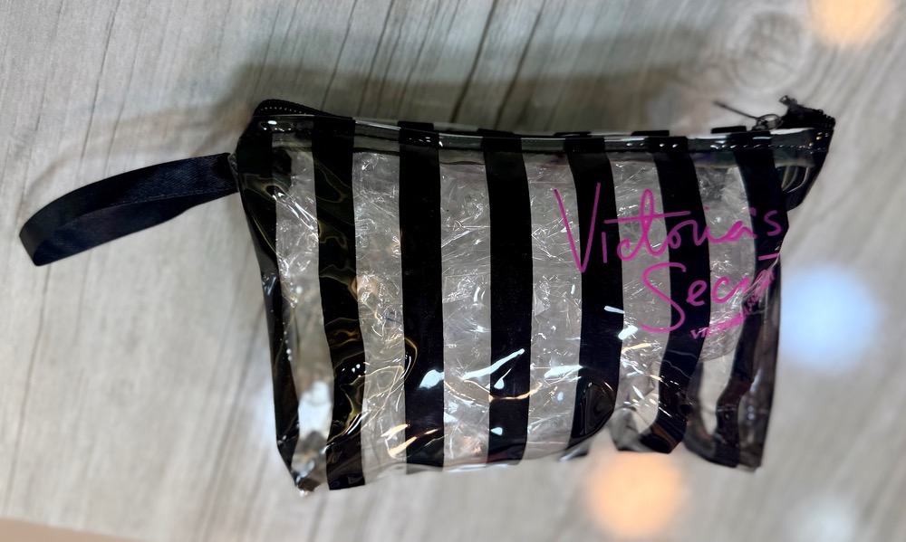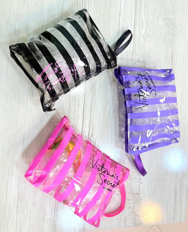 کیف آرایشی جنس ورنی شفاف سایز متوسط وجادار برند ویکتوریا سکرت